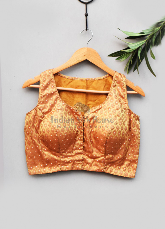 Flaunt sartorial elegance as you adorn this100% pure silk padded blouse exclusively designed for a chic look. The resham woven buta all over in this super soft Benarasi silk fabric looks classy and this blouse can very well be teamed up universally with many sarees.